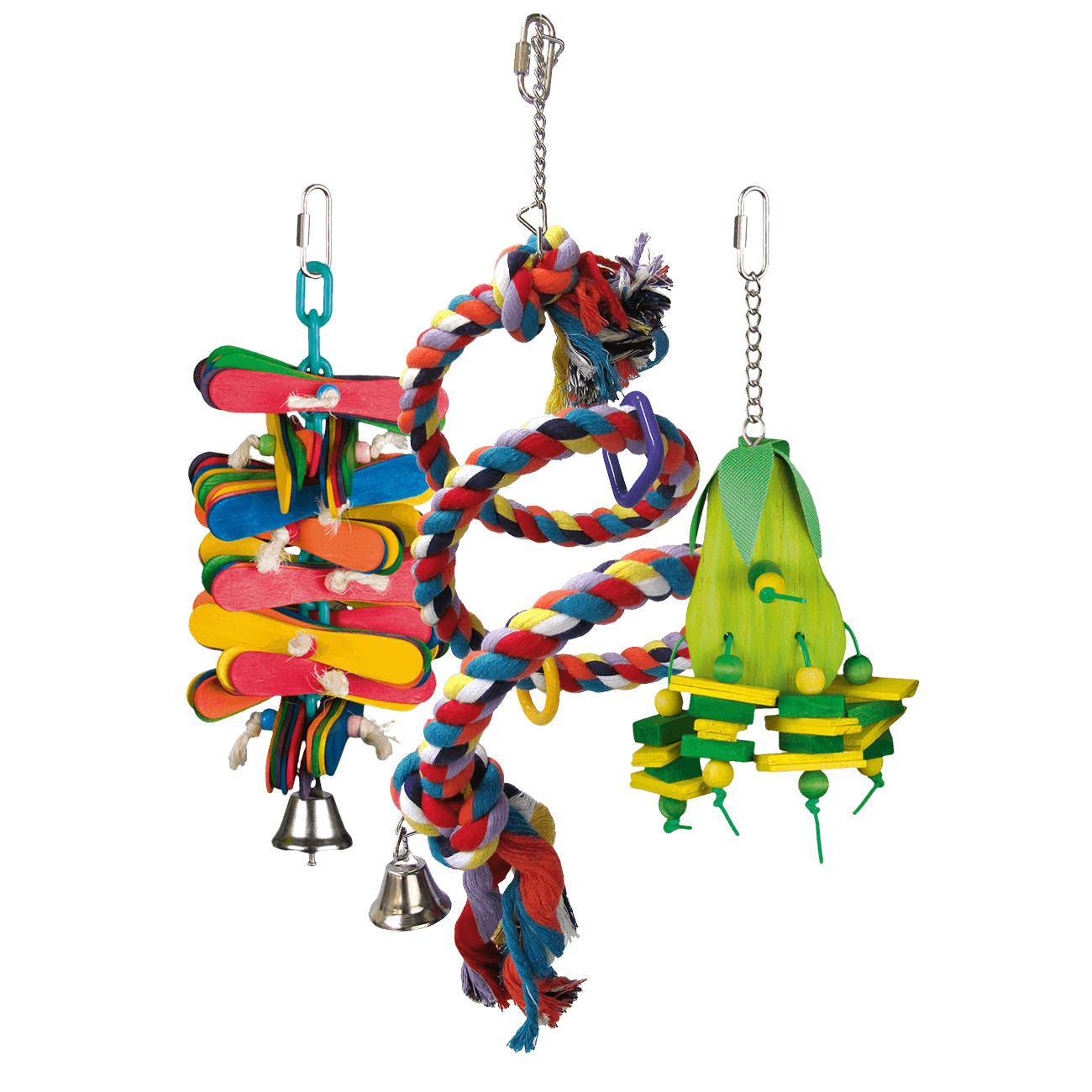 Toys for Parrots and Cockatiels with wood and plastic